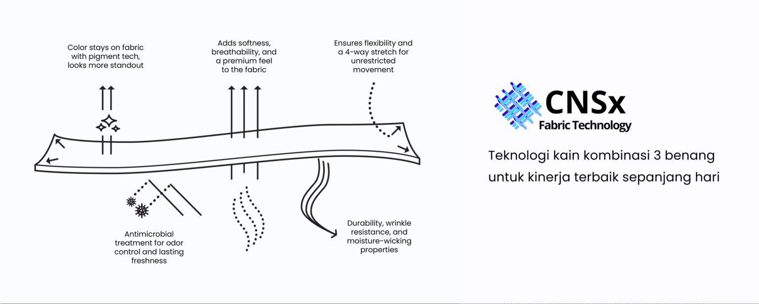 Standar internasional yang kami ciptakan lahir dari kebutuhan yang belum terpenuhi. Menggunakan teknologi kain antimikroba, tidak mudah kusut, super lembut, dan stretch empat arah. Kami rancang khusus untuk mendukung performa Anda di iklim tropis Indonesia. Karena Anda layak mendapatkan kenyamanan total dan kebebasan bergerak, kapan pun dan di mana pun Anda bertugas.