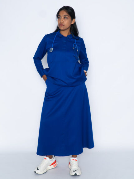 Two- Pocket Longsleeve Scrub Tops and Two Pocket A-Line Scrub Skirts Details & Fit: Scrub Top Model is 172 cm / Wearing M Oversized fit. Longsleeve scrub polo Oversized fit. For a classic fit, size down. Stand collar with button Total of Two pockets Two deep welt hand pockets Back yoke with box pleat Draped…